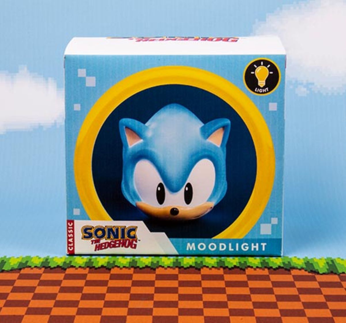 Lampada a forma di testa di Sonic. Richiede 2 batterie AAA (NON incluse).